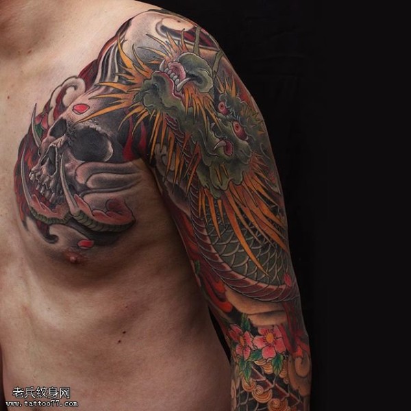 肩部的骷髅龙纹身图案