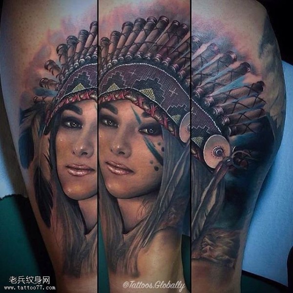 臀部印第安美女纹身图案