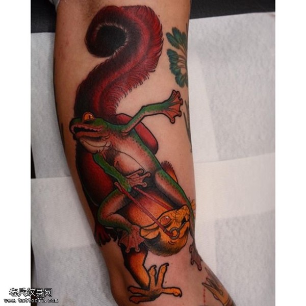 腿部的松鼠青蛙纹身图案