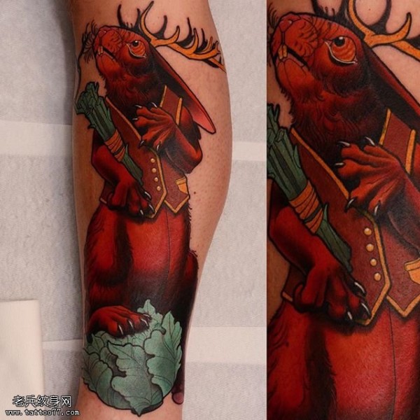腿部的兔子纹身图案