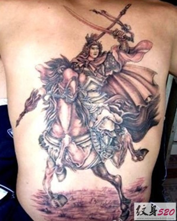 男士钟爱的满背赵子龙纹身