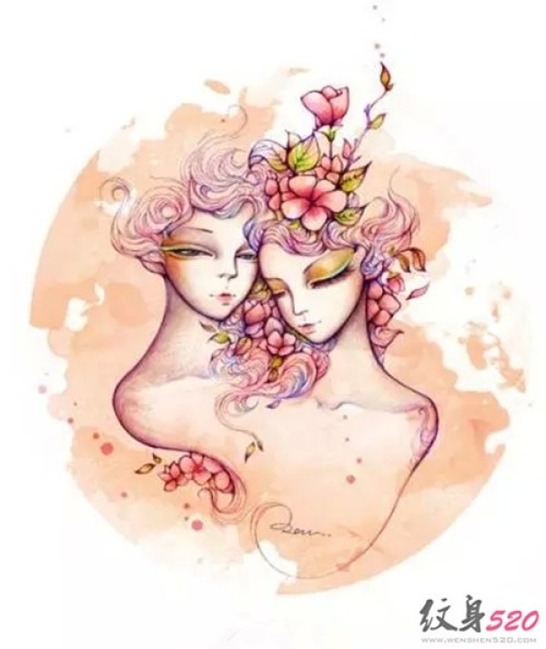双子座纹身手稿_29张十二星座之双子座纹身图案手稿