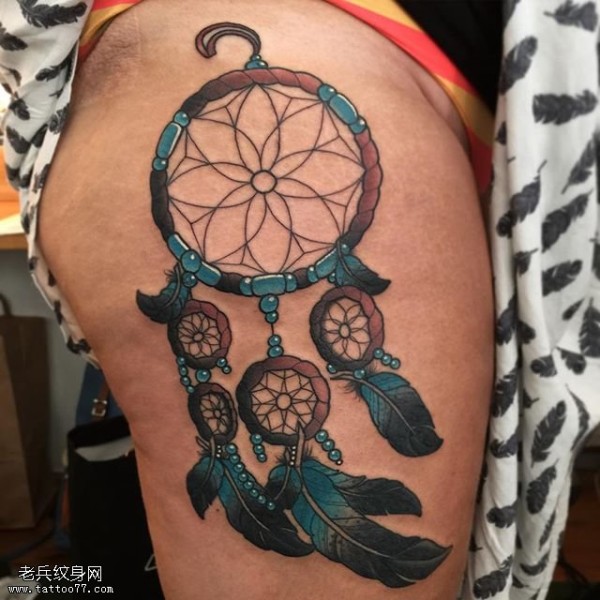 大腿彩绘的捕梦网纹身图案