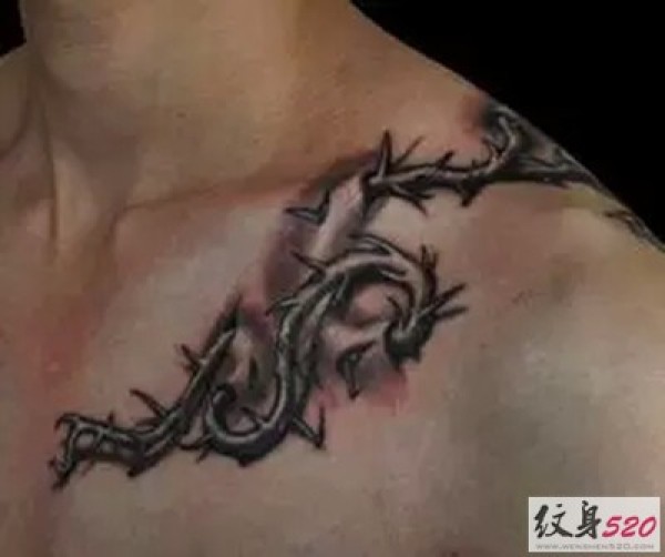 后肩唯美花藤英文图案图片_植物纹身图案大全_纹身图吧