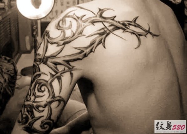 后肩唯美花藤英文图案图片_植物纹身图案大全_纹身图吧