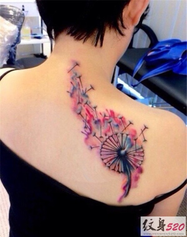 后肩唯美花藤英文图案图片_植物纹身图案大全_纹身图吧