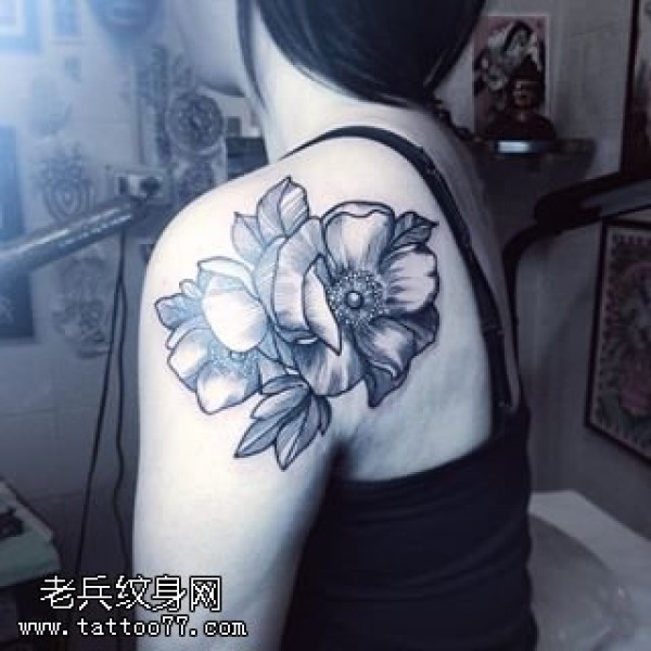 女生肩花纹身_15张女性双肩对称的肩花纹身图案作品图片