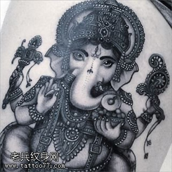 腿部的大象神纹身图案