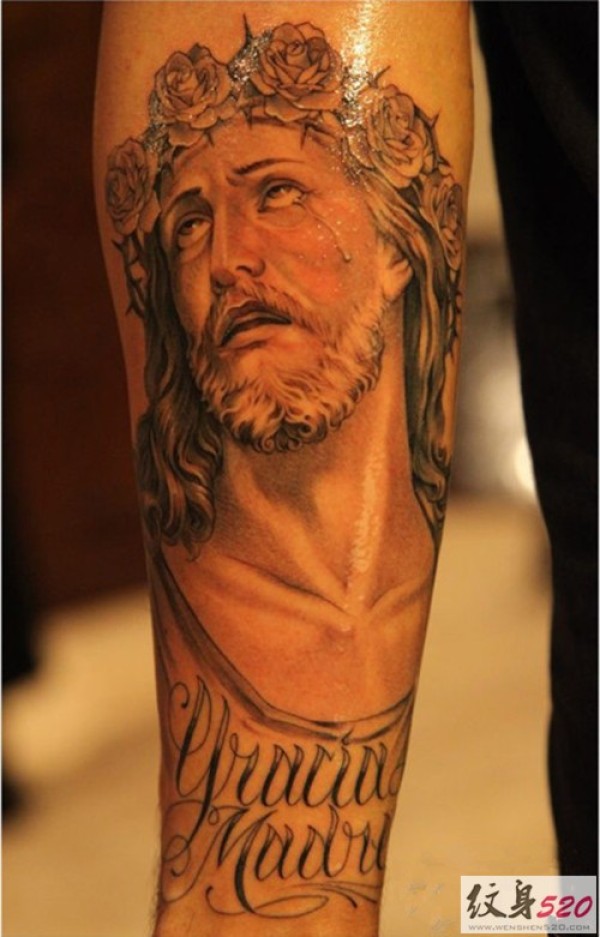 手臂救世主耶稣纹身图案