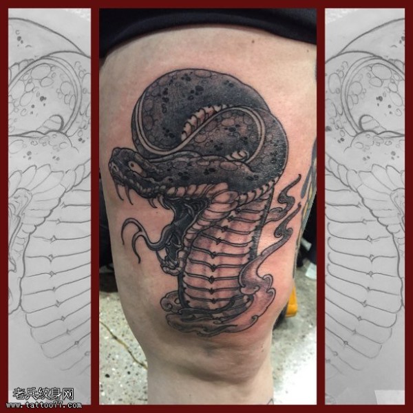 大腿的龙蛇纹身图案