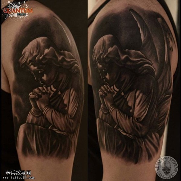 女生肩花纹身_15张女性双肩对称的肩花纹身图案作品图片