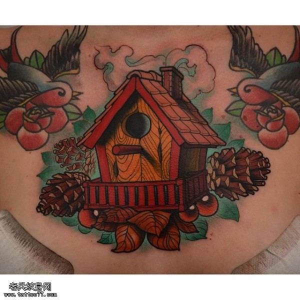 胸前的小房子纹身图案
