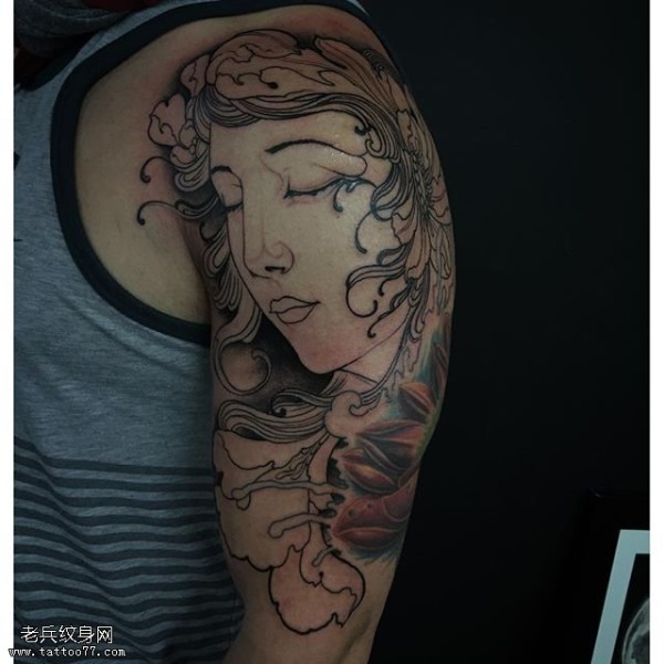 女生肩花纹身_15张女性双肩对称的肩花纹身图案作品图片