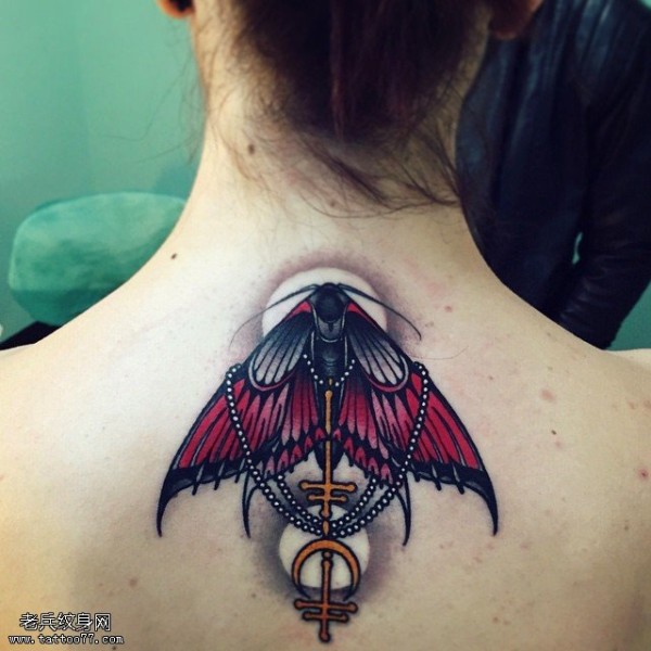 背部的红飞蛾纹身图案