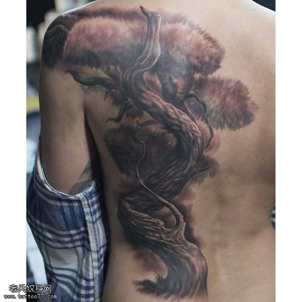 背部一颗老松树纹身图案