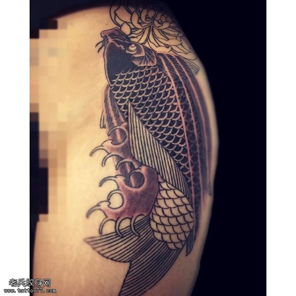 传统鲤鱼花小腿纹身_腿部纹身图案大全_纹身图吧