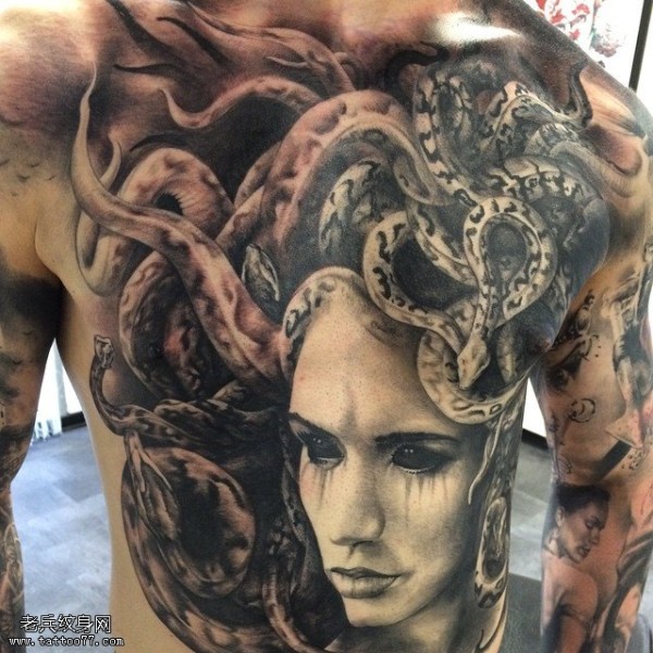 超大面积的美杜莎纹身图案