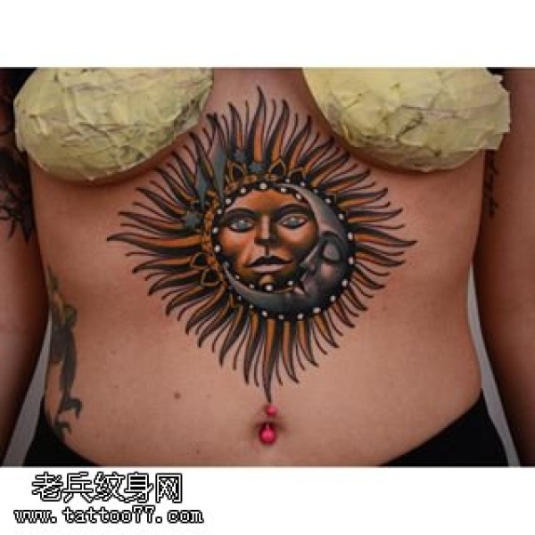 胸下的太阳图腾纹身图案