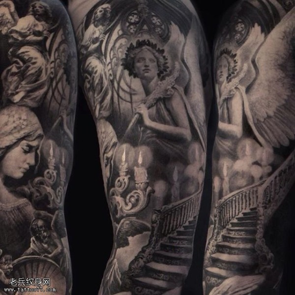 女生肩花纹身_15张女性双肩对称的肩花纹身图案作品图片