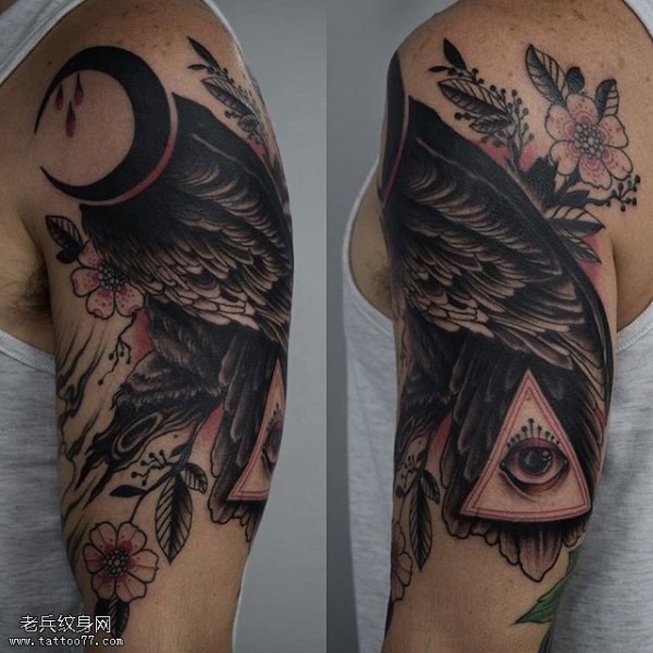 女生肩花纹身_15张女性双肩对称的肩花纹身图案作品图片