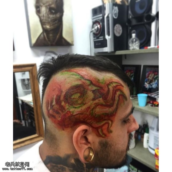 霸气男头部时尚纹身图片_头部纹身图案大全_纹身图吧