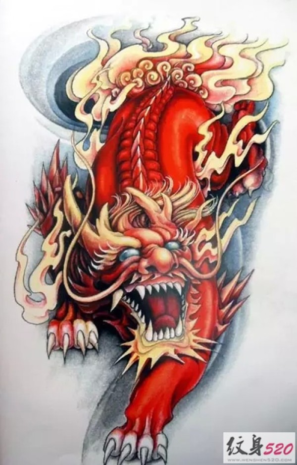 龙纹身手稿_一组老传统黑灰龙手稿纹身图案