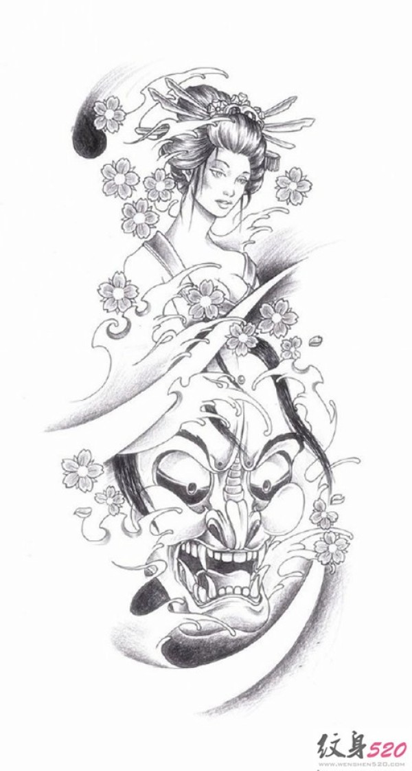 能面万媚纹身手稿_52张日式能剧面具纹身手稿图案素材欣赏