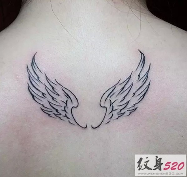 女生后腰纹身黑白灰风格抽象线条纹身图案