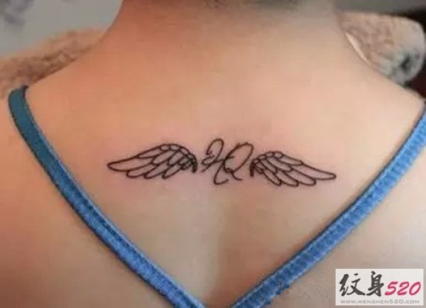 女生后腰纹身黑白灰风格抽象线条纹身图案