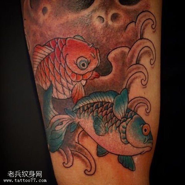 腿部两条小金鱼纹身图案
