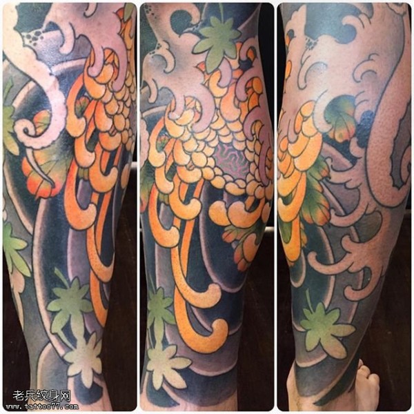 传统鲤鱼花小腿纹身_腿部纹身图案大全_纹身图吧