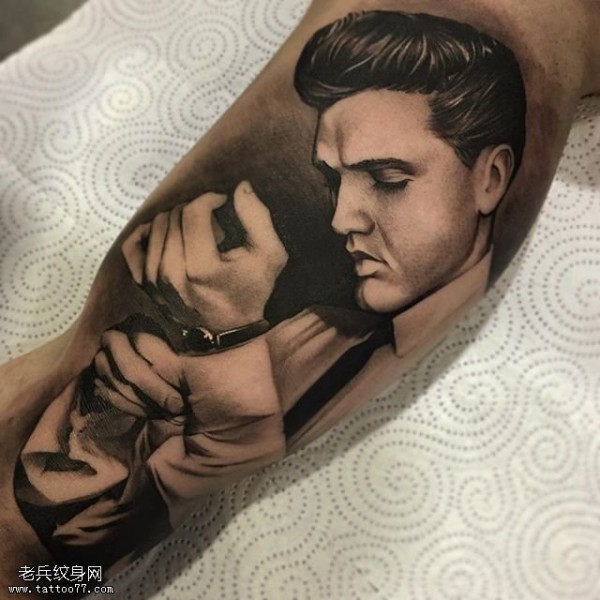 小腿帅气的肖像纹身图案