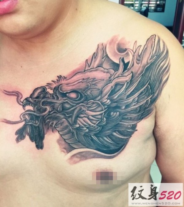 超赞的男士胸部龙头纹身