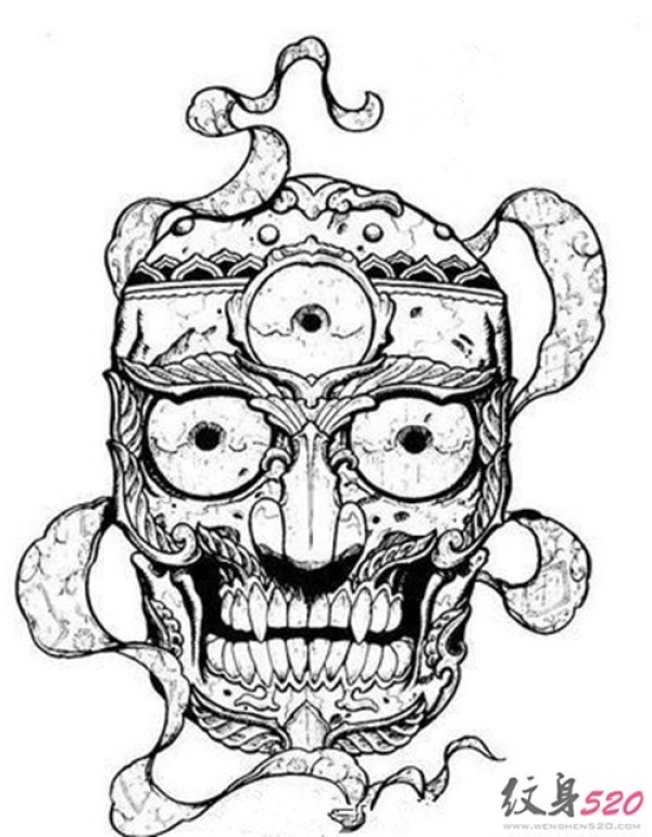 能面万媚纹身手稿_52张日式能剧面具纹身手稿图案素材欣赏