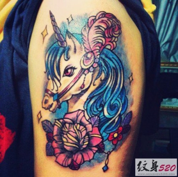 彩色独角兽纹身图片欣赏