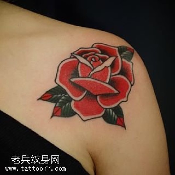 肩部的一朵玫瑰纹身图案