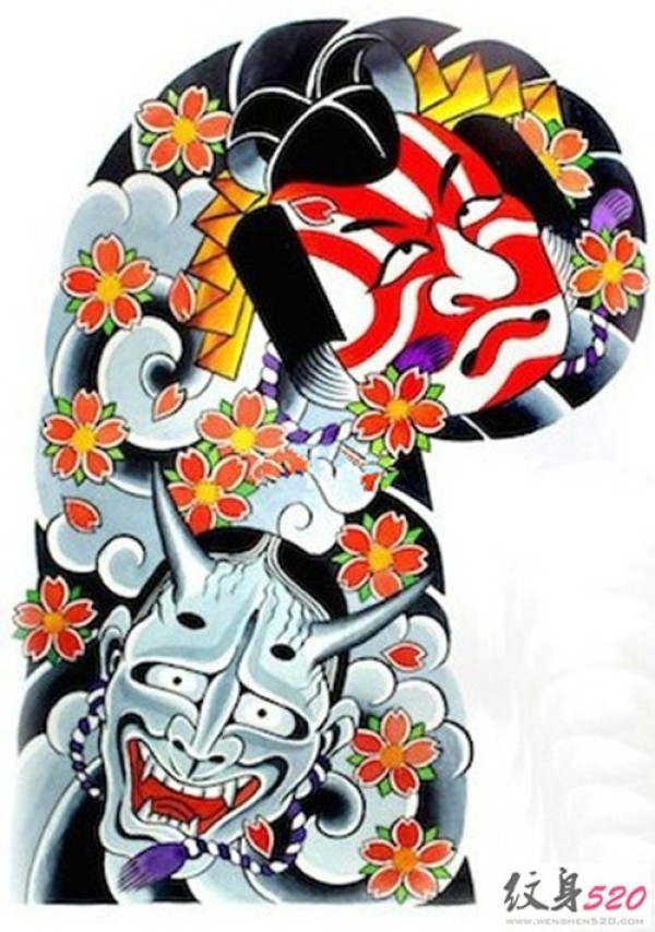 传统艺妓般若纹身图案手稿