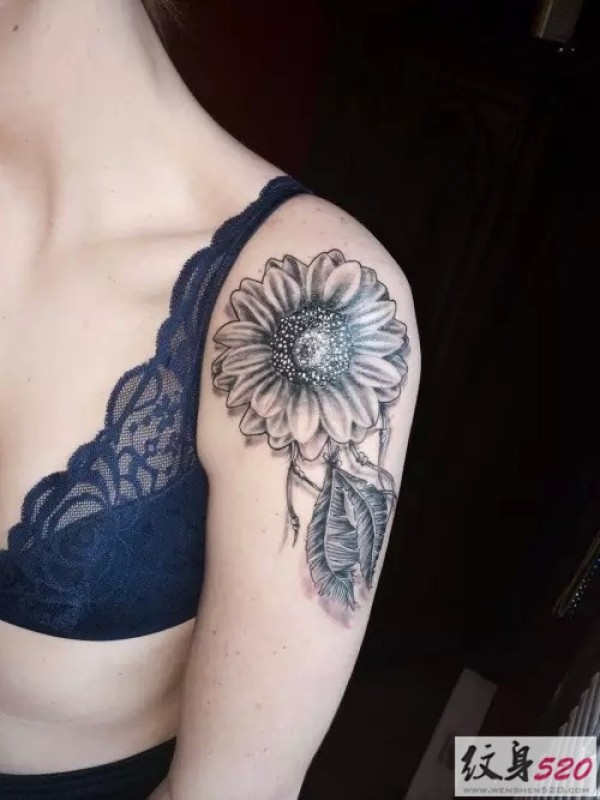 女生肩花纹身_15张女性双肩对称的肩花纹身图案作品图片