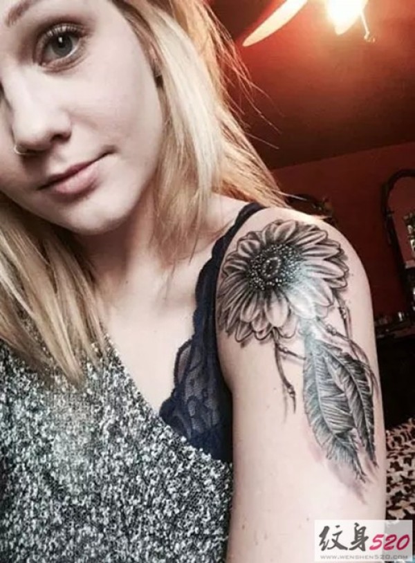 女生肩花纹身_15张女性双肩对称的肩花纹身图案作品图片