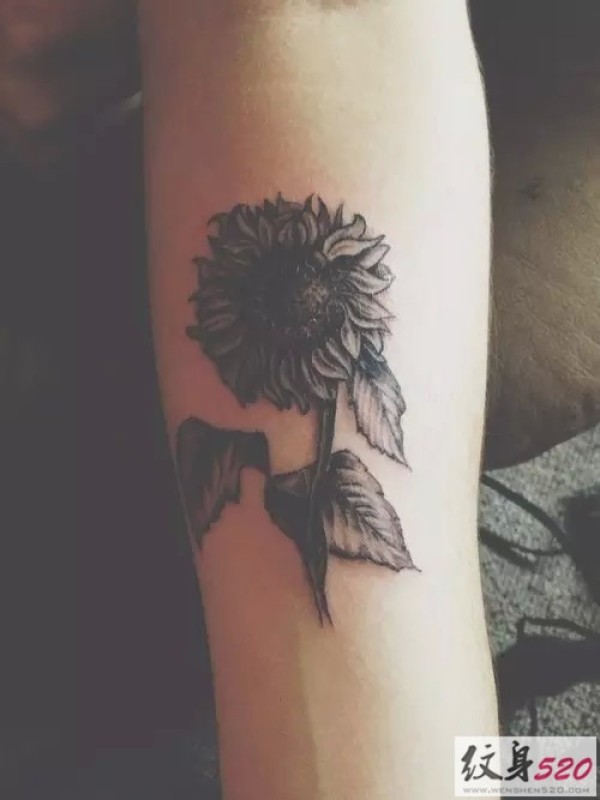 女生手臂黑灰向日葵纹身