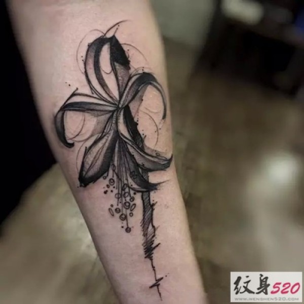 典雅的黑白水墨纹身