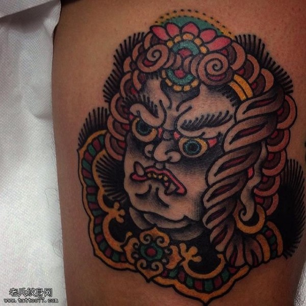 传统花腿纹身--18张传统风格的大花腿纹身图案作品
