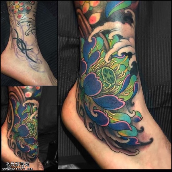 分享一款脚踝莲花纹身图案_脚部纹身图案大全_纹身图吧