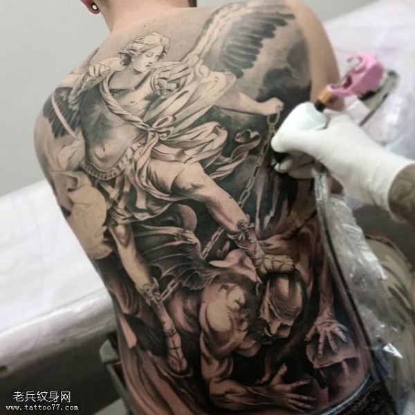 满背天使恶魔纹身图案