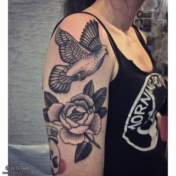女生肩花纹身_15张女性双肩对称的肩花纹身图案作品图片
