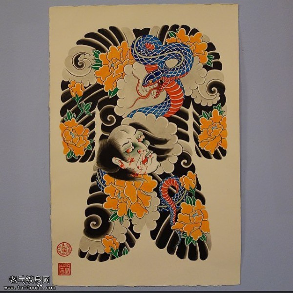 能面万媚纹身手稿_52张日式能剧面具纹身手稿图案素材欣赏