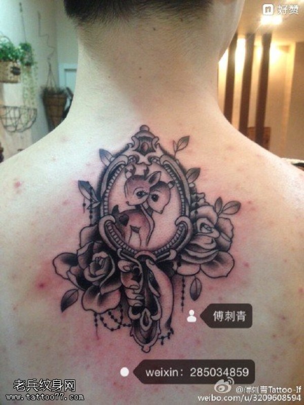 背部的情侣小鹿纹身图案