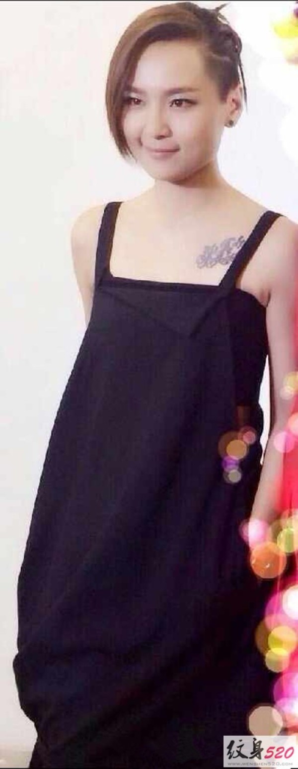 周笔畅锁骨字母纹身图片