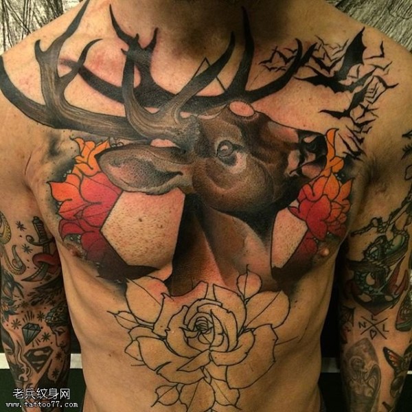 胸前的灵鹿纹身图案