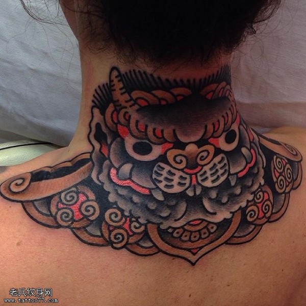脖子上的日式老虎纹身图案